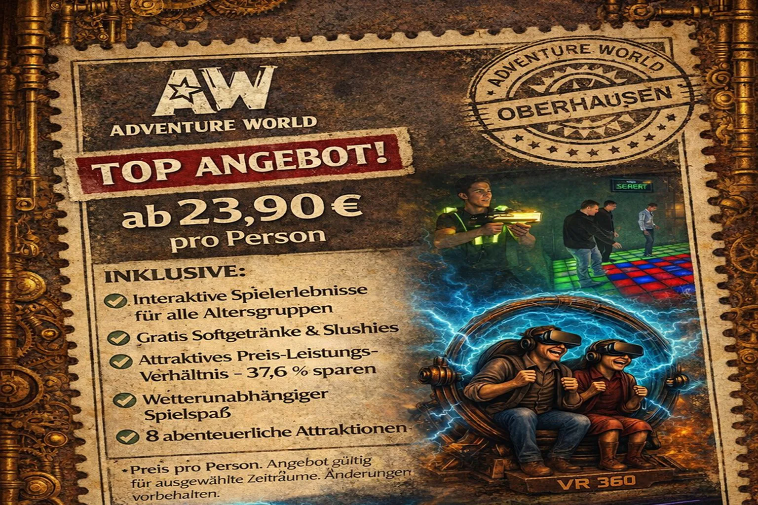 Erlebe unvergessliche Ferien in der Adventure World Oberhausen – sichere dir jetzt dein AdventureDay-Ticket ab 24,90 € und genieße 2 bis 4 Stunden pures Vergnügen!