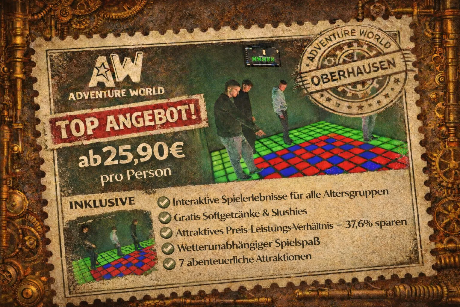 Buche gleich einen Termin auf www.adventure-world-oberhausen.de oder ruf uns an unter 0208 62036693.